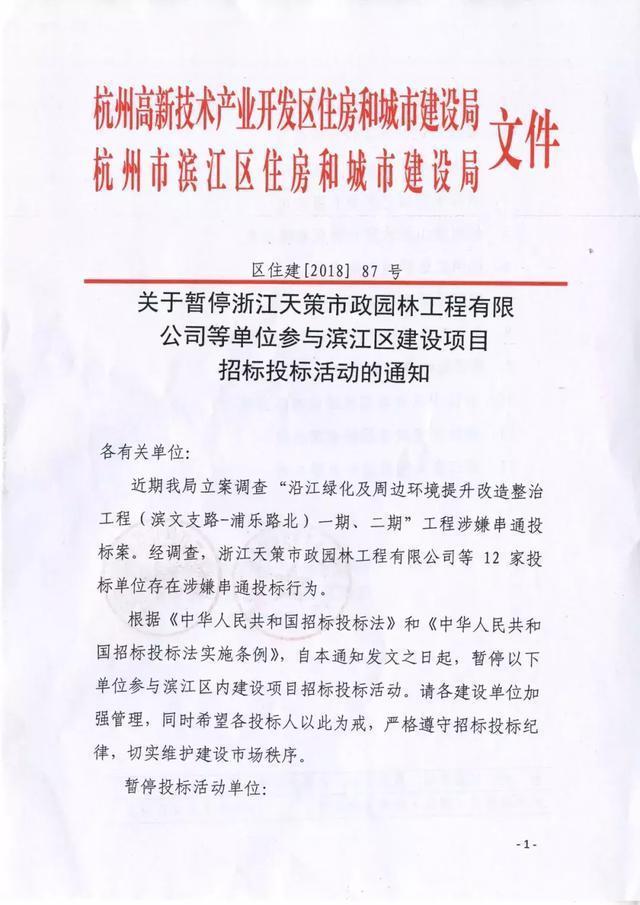 近日,杭州市高新技术开发区和滨江区住建局发布通知,暂停12家单位参与滨江区建设项目招标投标活动。